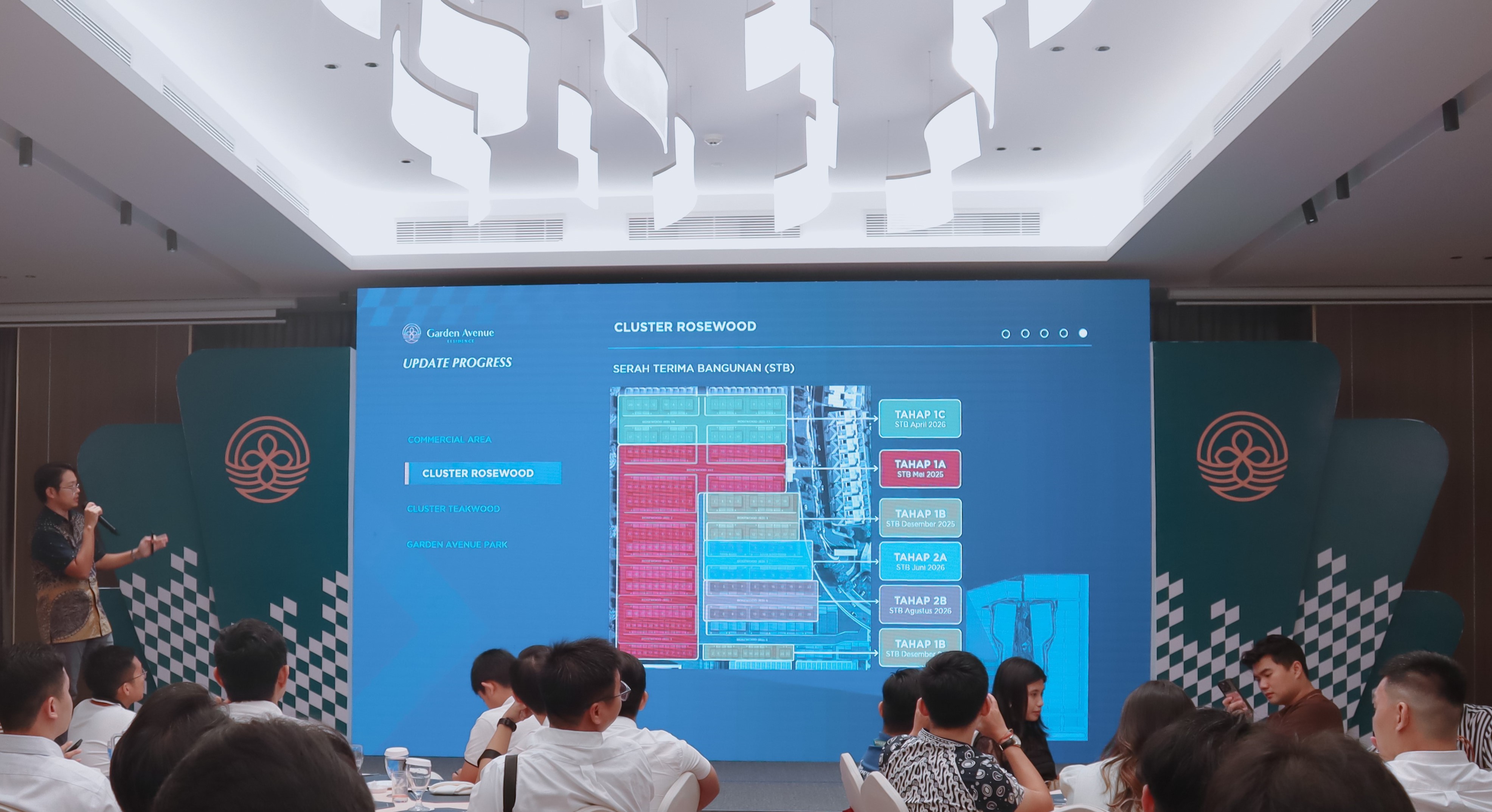Following the speech, Chrispin Andereas, Head of Business Development at Tunas Group, presented updates on the progress and future developments at Garden Avenue. Chrispin shared key details, including the estimated building handover (STB) for Cluster Rosewood in May 2025, Cluster Teakwood in 2026, the Garden Avenue Square retail units in September 2024, and the TOP 100 Supermarket in early 2025. He also highlighted the ongoing development of the 4.5Ha Garden Avenue Park and provided a sneak peek of the upcoming Cluster Mahogany, a luxury villa development targeting high-end consumers in Batam.