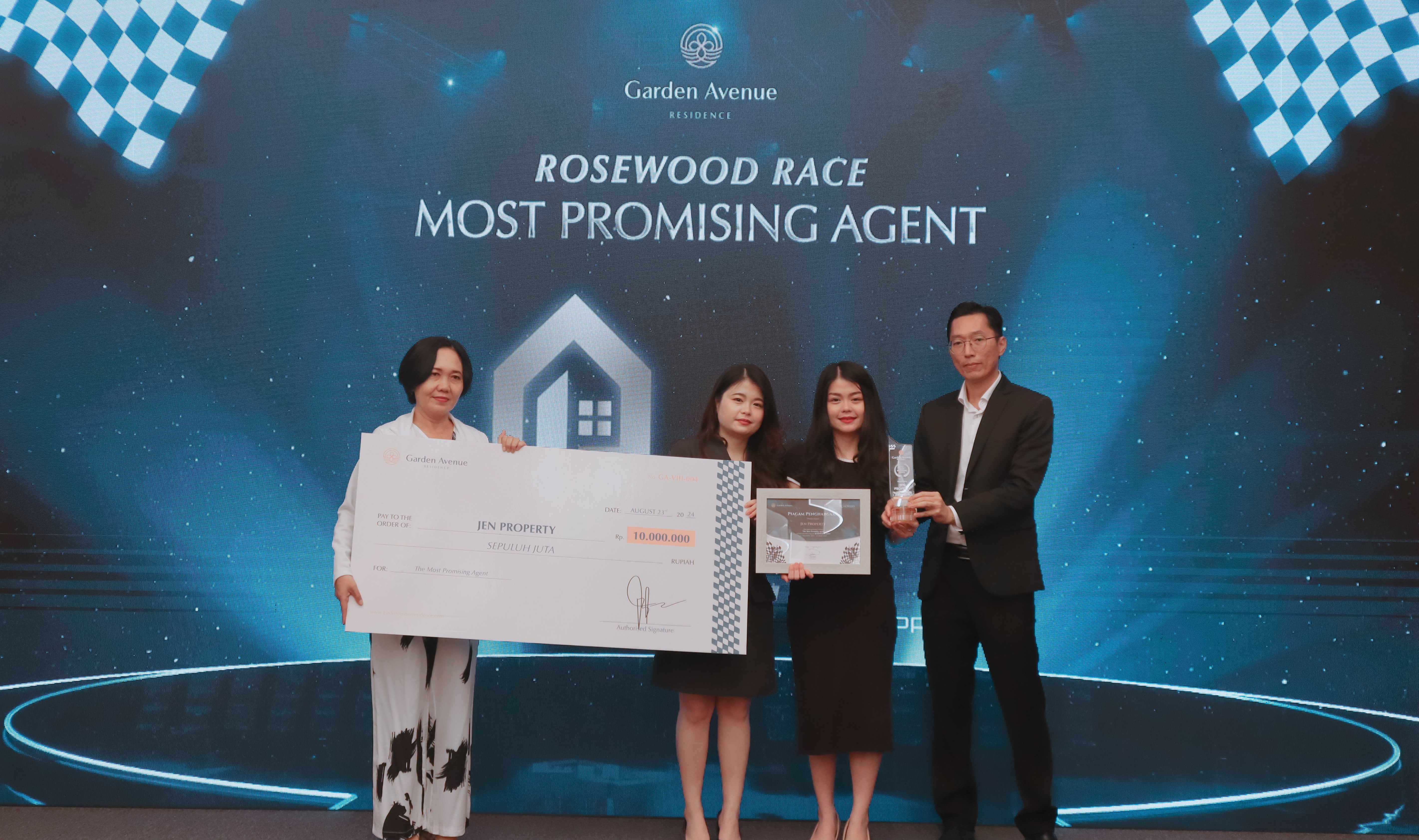 - The Most Promising Agent: This special category recognized Jen Property for their exceptional dedication and efforts in promoting Garden Avenue Residence over the past year. Jen Property received IDR 10,000,000 in cash, a certificate, and a placard.